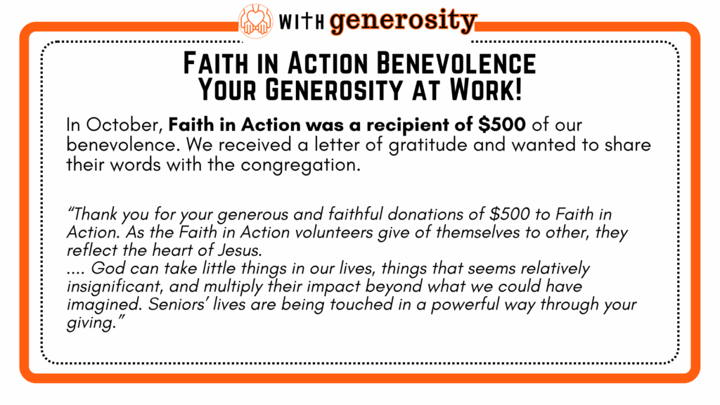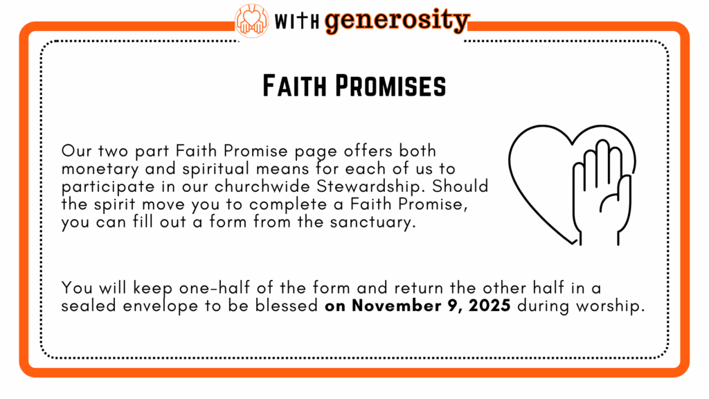 Praise God from whom all blessings flow….this is the first line of one of the first “church” songs I grew up with, a song that often pops into my head when least expected. Considering the abundance of blessings that fill my life on the brightest and darkest of days, I look forward to completing my Faith Promise form. The act of physically writing my faith promise strengthens my resolve to recognize all the ways God shows up in my life, and to pass along my gratitude in concrete ways. Together, let’s praise God through our Faith Promises in thankfulness for all those blessings that flow!