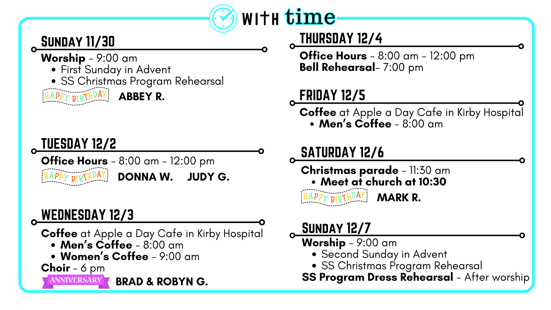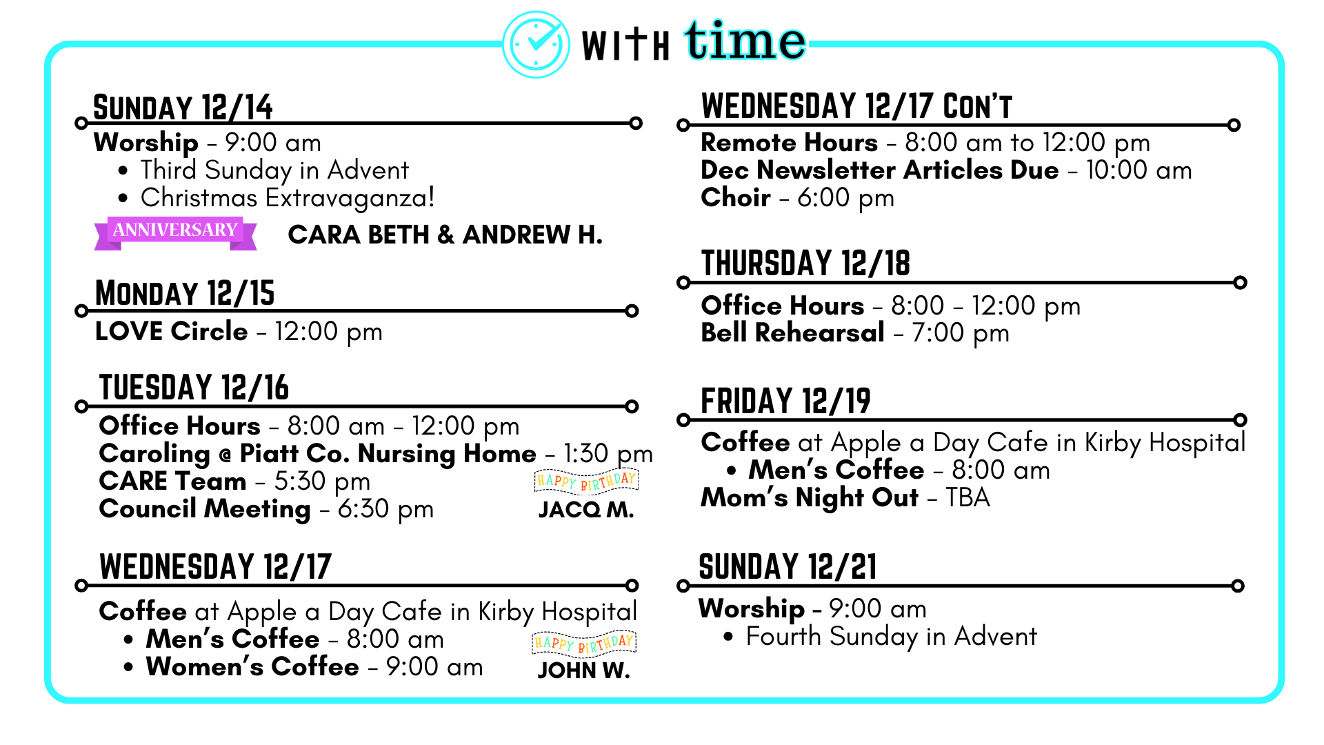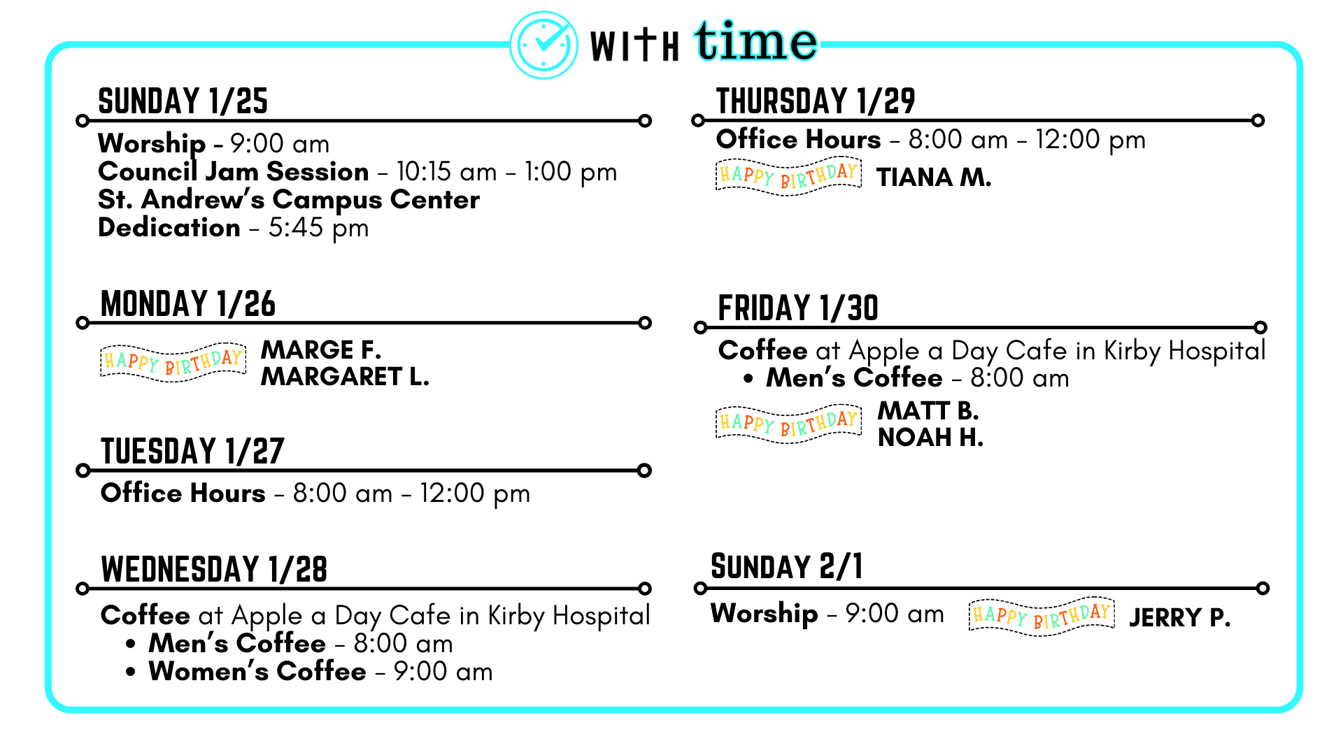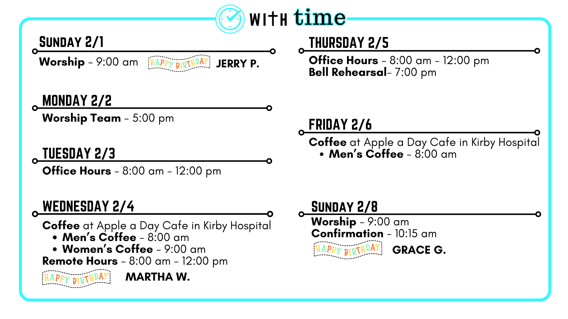 Are you receiving our email updates? Here are some snippets from our weekly e-news and monthly newsletter. Contact the church office if you need to be added to our email list.