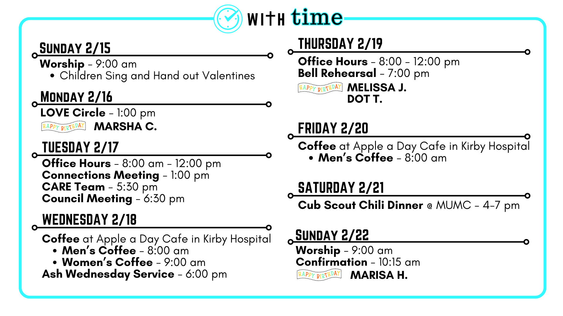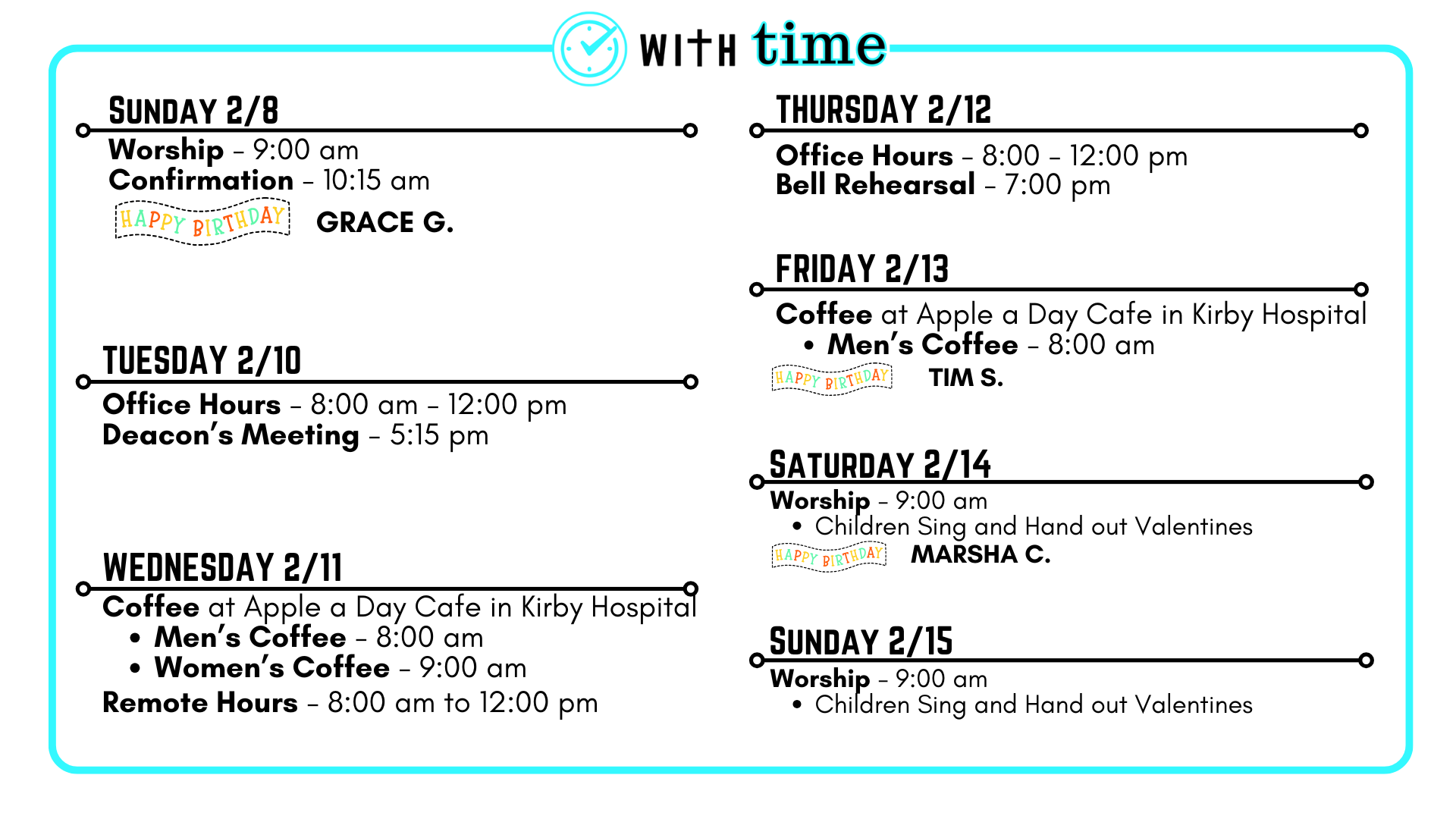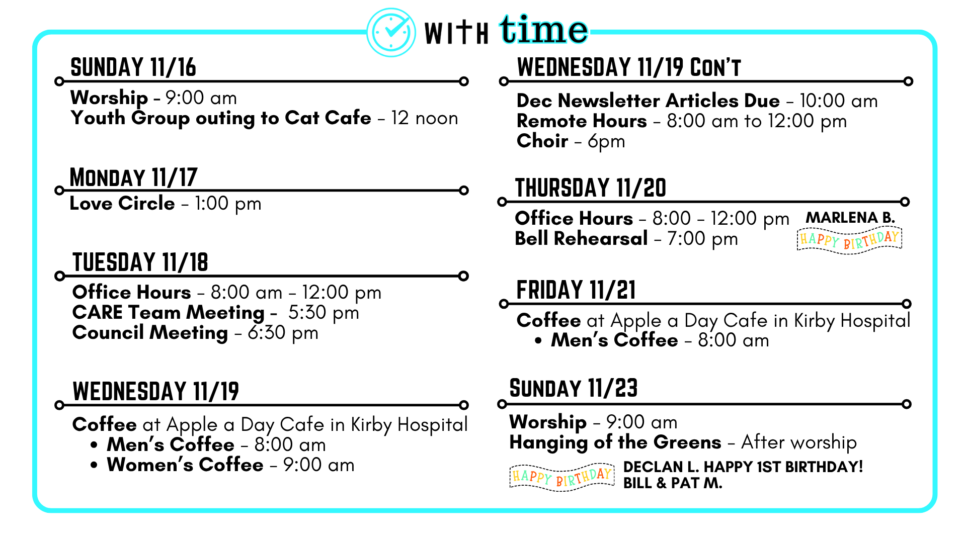 Are you receiving our email updates? Here are some snippets from our weekly e-news and monthly newsletter. Contact the church office if you need to be added to our email list.