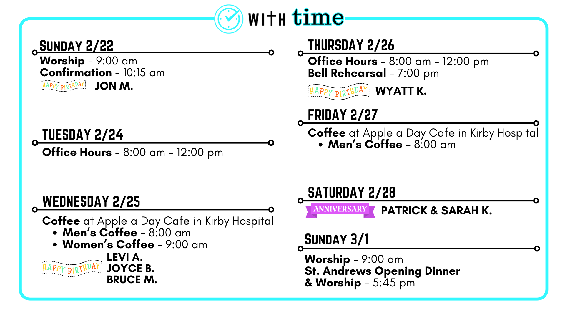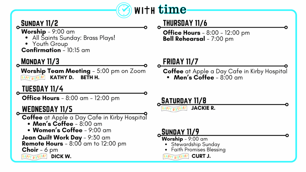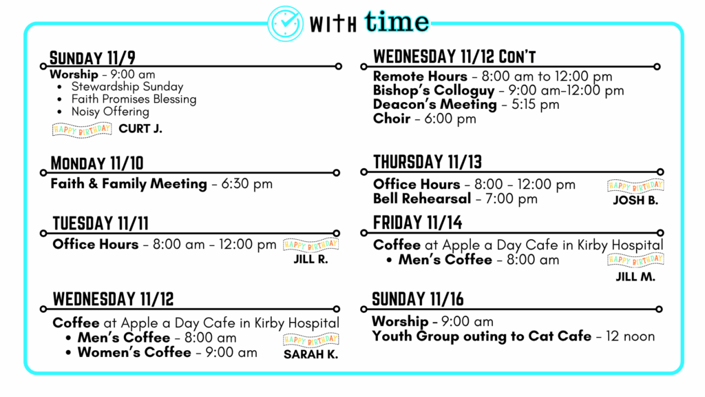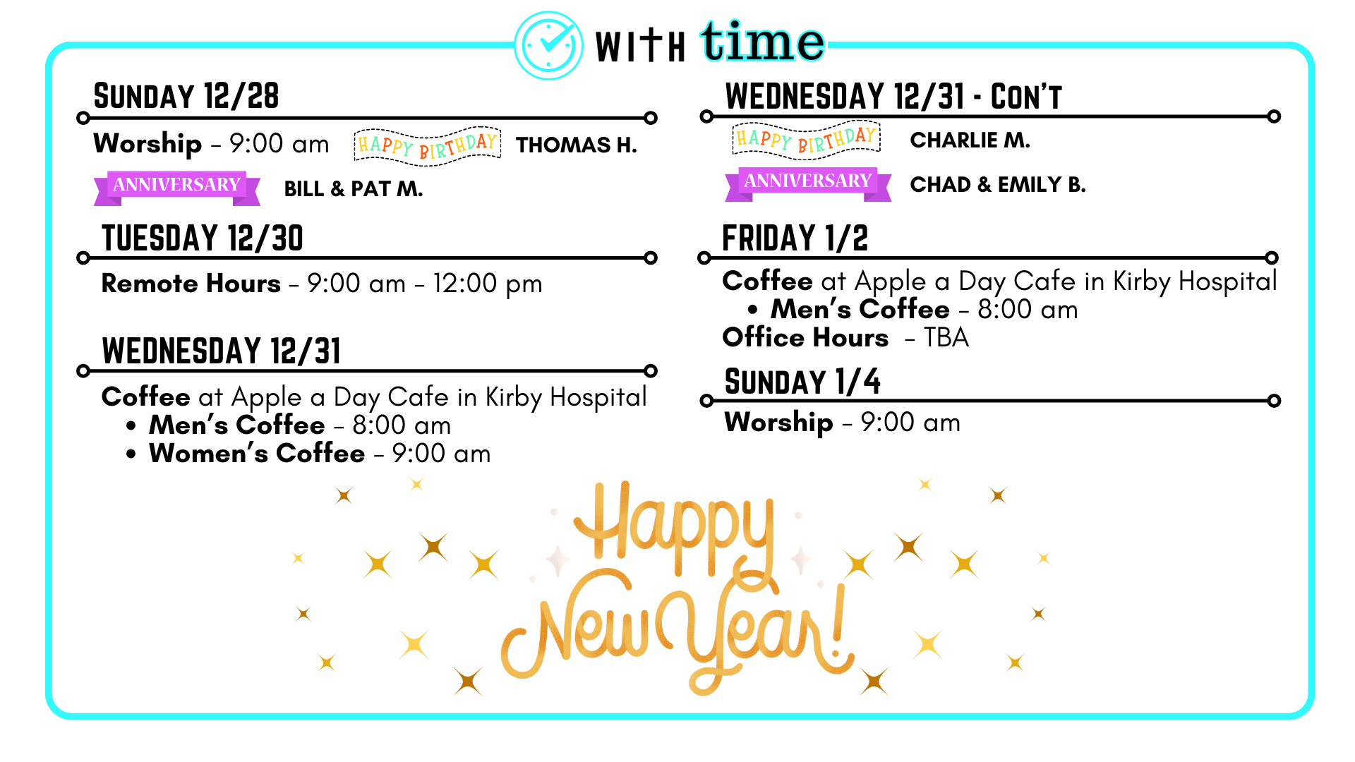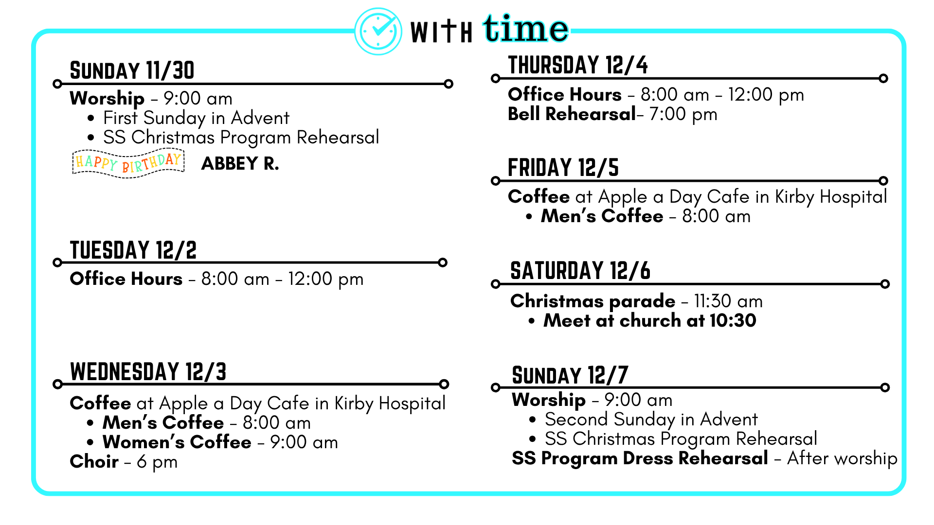 Are you receiving our email updates? Here are some snippets from our weekly e-news and monthly newsletter. Contact the church office if you need to be added to our email list.
