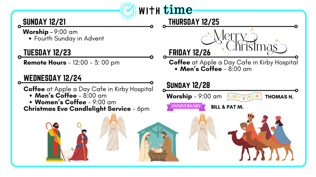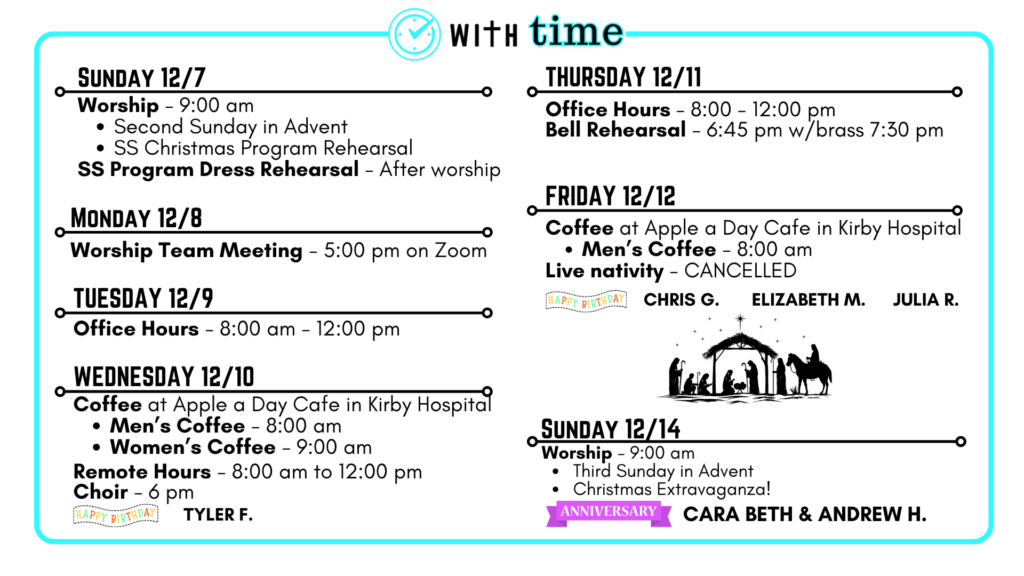 ‘Tis the season of temptation. Not only the temptation of that second helping of pie but the nudge to do a bit of extra that catches your attention, even for just a moment. A Live Nativity shift? A prayer partner with one of our Sunday School kids? A sanctuary